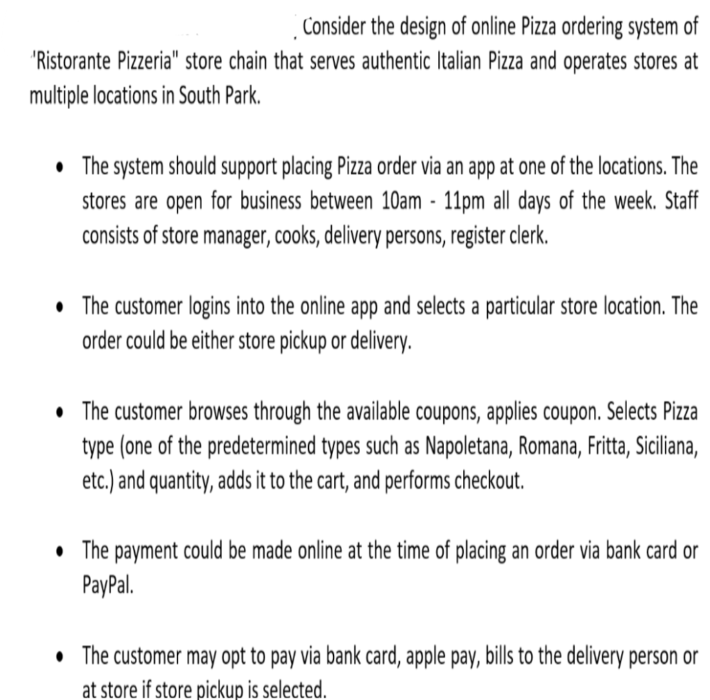Solved Consider The Design Of Online Pizza Ordering System Chegg Com